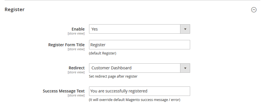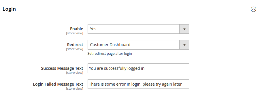 Select 'Yes' or 'No' to enable or disable the login, logout, register or Forget password forms in your storefront.