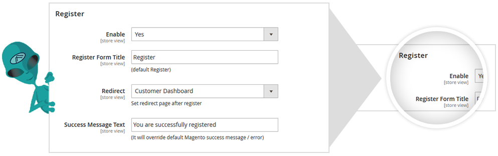 - Eliminates the default login and registration process of Magento