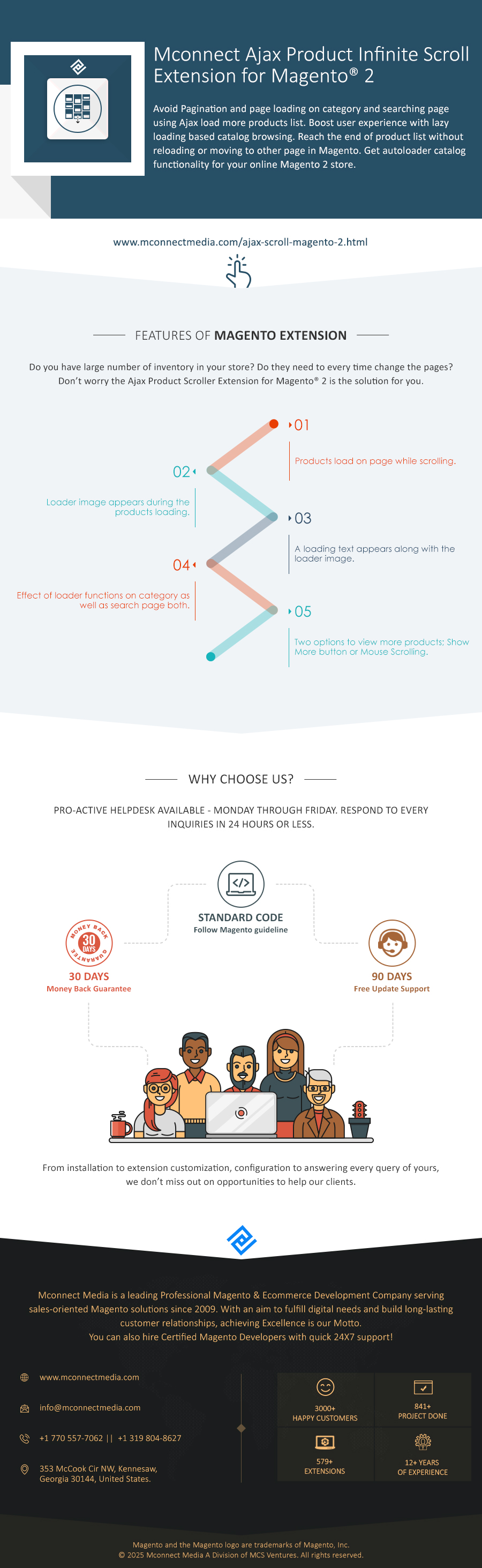 Overall the extension will helps your customers to save their time & load more products on just mouse scroll by reducing site navigation and clicks. So, your customers stay longer on your Magento 2 store. Indirectly, it helps in delivering an engaging shopping experience by reducing the bounce rate and increase your store sales.