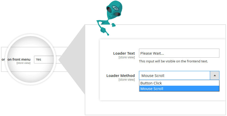 For Loader Method - You can select between two product loader methods: Button click or Mouse Scroll while displaying the next products.
