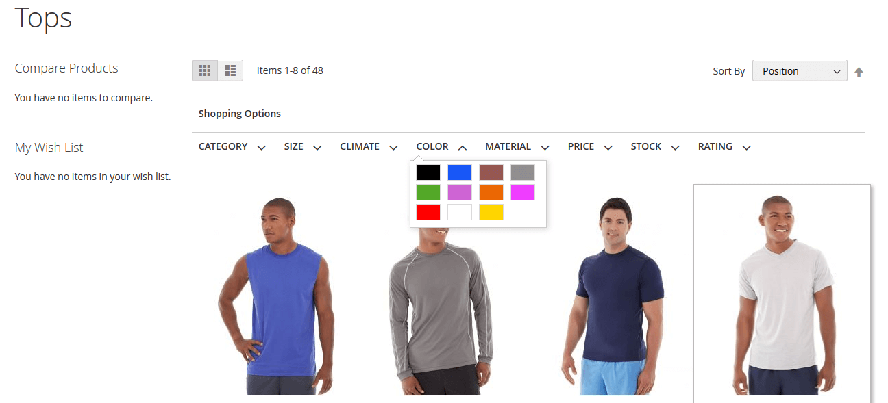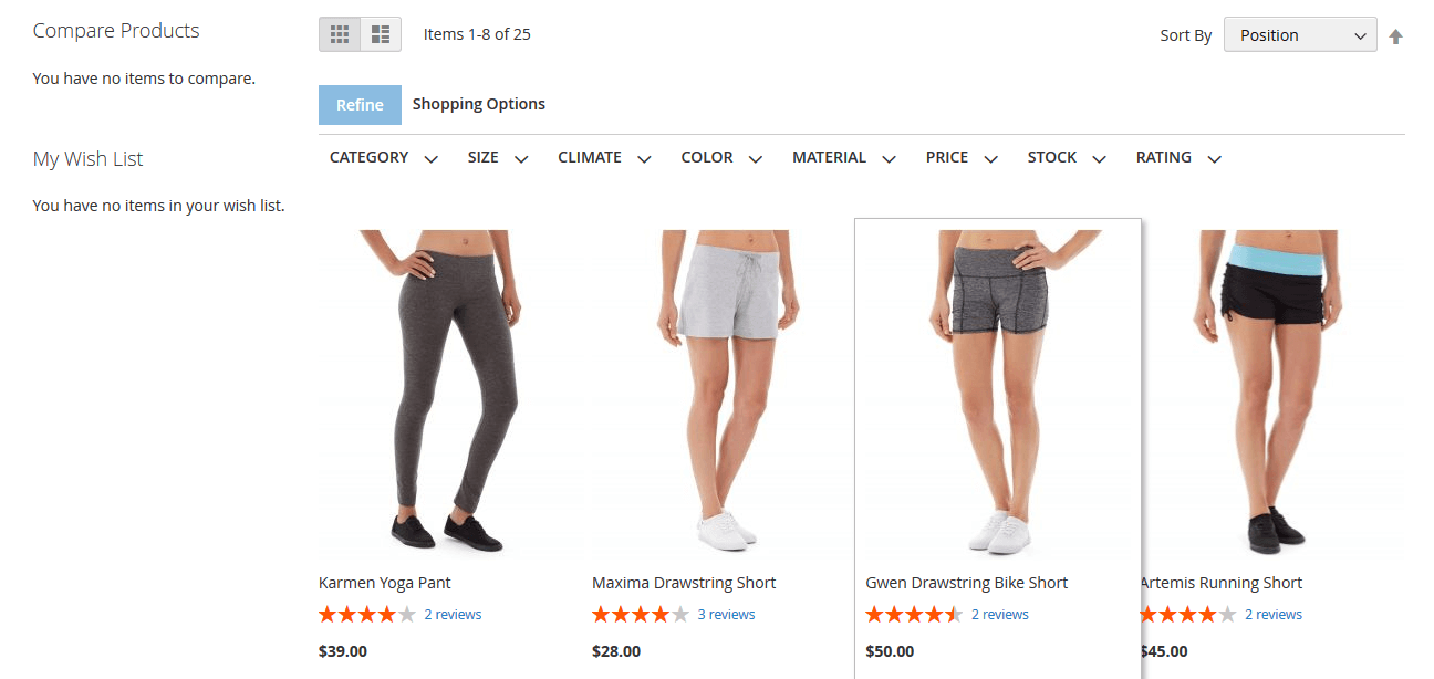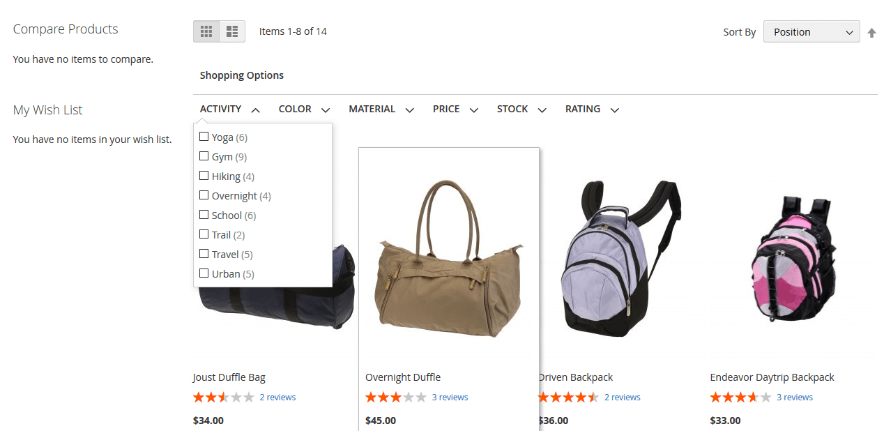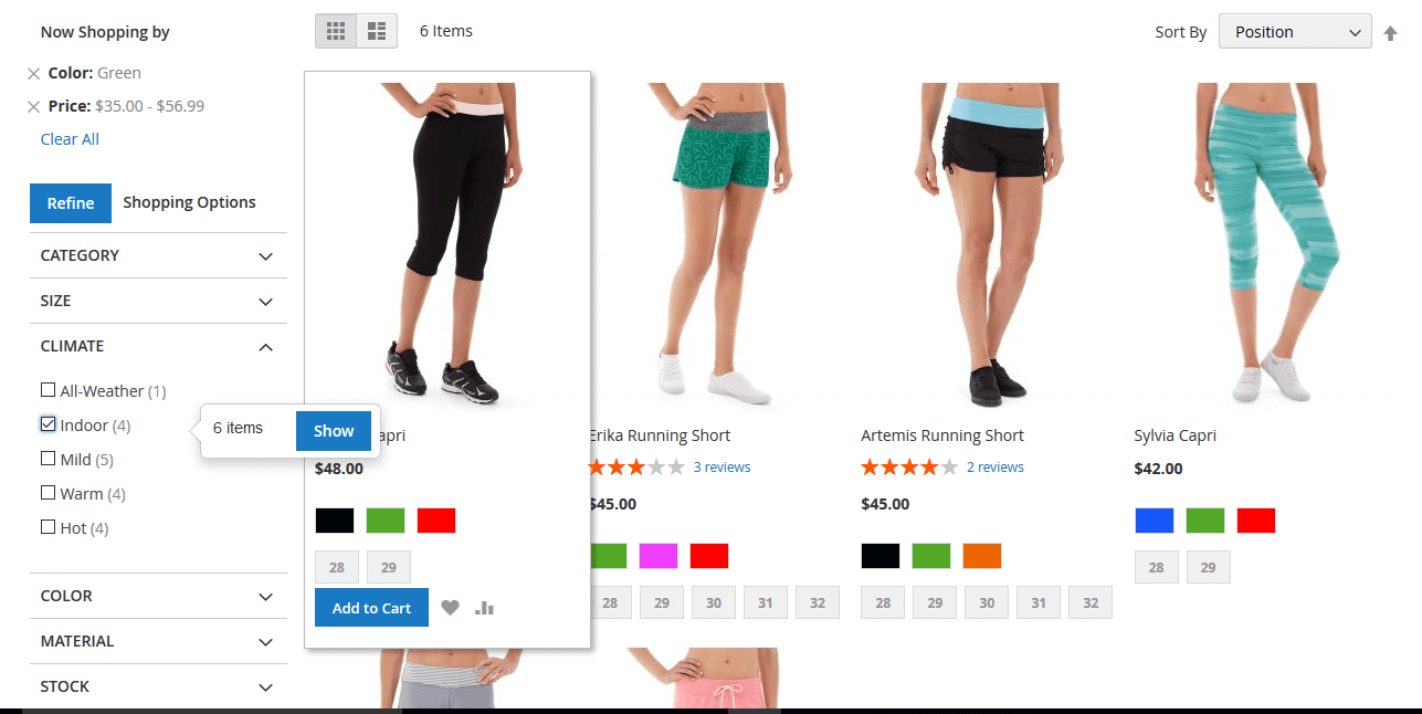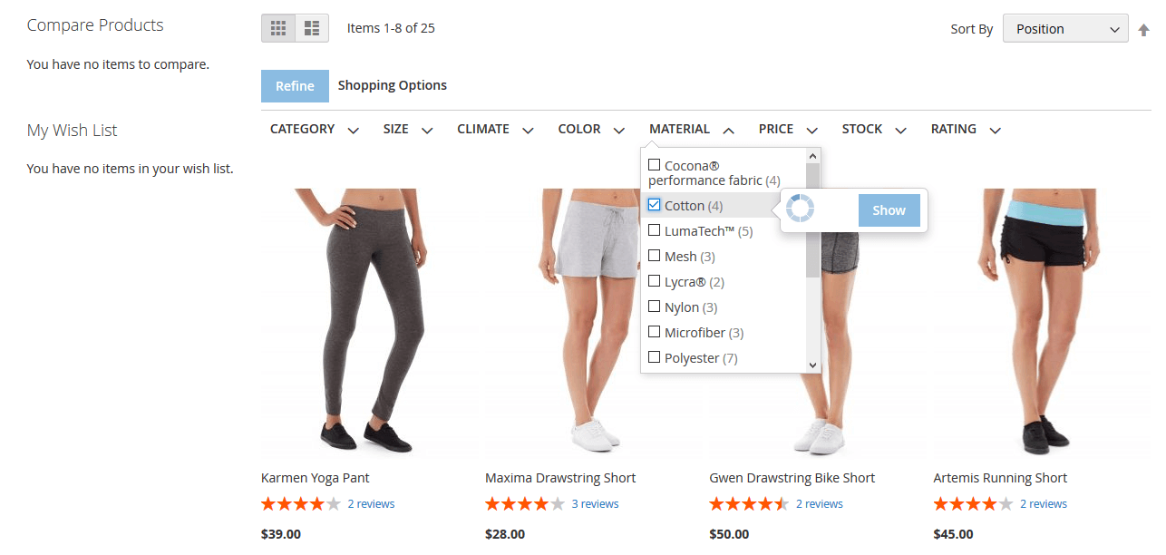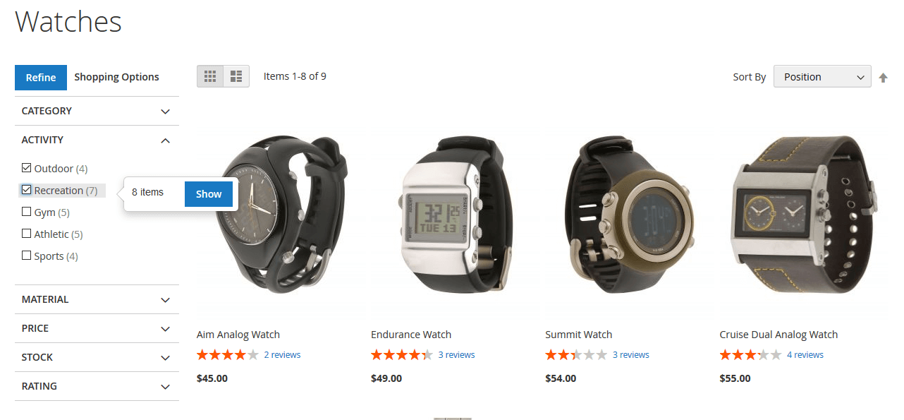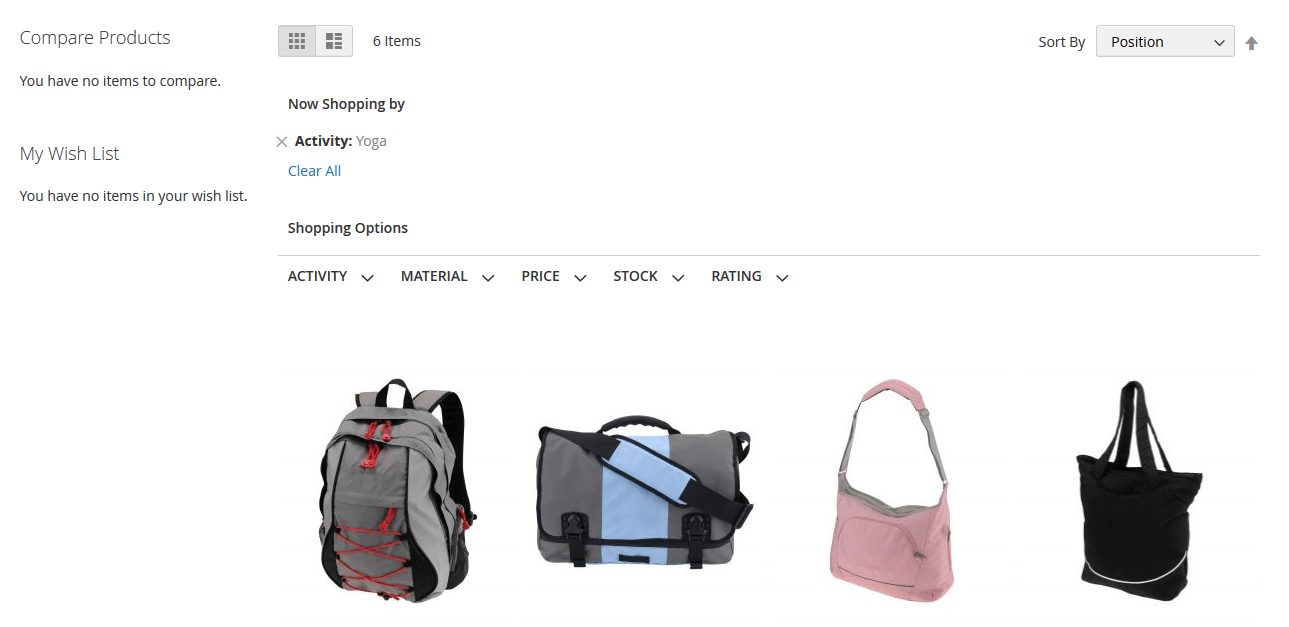 Using backend options, the admin can choose from various available product filters that he or she wants to display in frontend product category and search results page. You can also customize the product filter position, such as horizontal or vertical, on the search page. If the admin has enabled the stock filter option, then your shoppers will also be able to quickly filter products that are currently in stock or out of stock with in the same search results. Not just that, if your customer wants to start a new search, then they can remove all the selected product filter options and can begin again. Ultimately adding such product filter options will help customers to meet their requirements by saving their lots of time & effort.