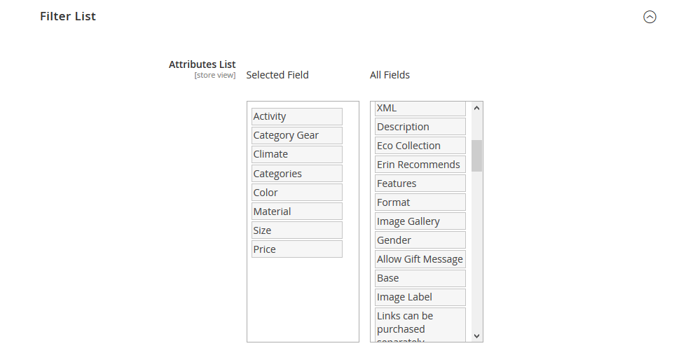 CHOOSE THE LIST OF ATTRIBUTES TO SHOW FOR FILTER