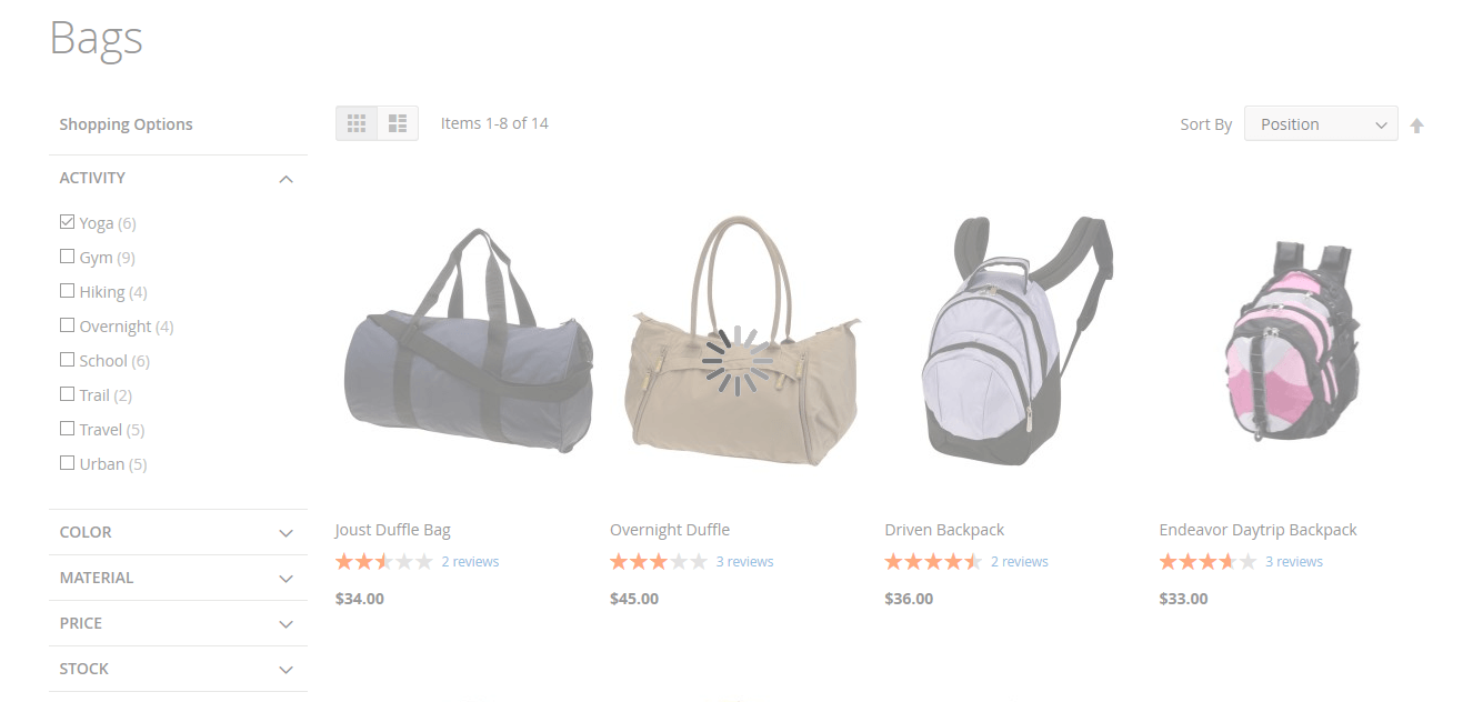 As soon as the customers select options of the attributes and apply to show the result, a loader image appears on the page while updating the search results as per applied filters and then it disappears with the display of customized search results. In the below image, you can see the effect and appearance of a loader image over the page.