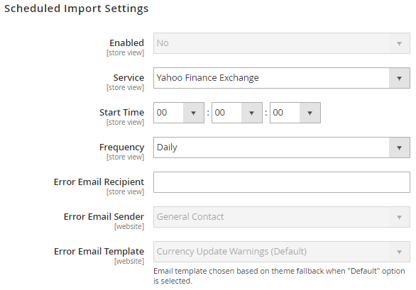 - Enabled: Select Yes from the option to auto update the currency rates on your store.