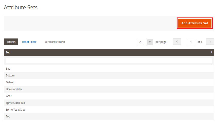 Click on Add Attribute Set button. New Attribute Set Screen will appear.