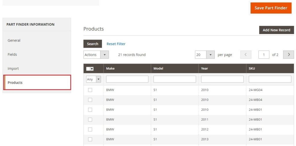 Steps to Add a or Create New Part Finder Extension in Magento 2 Store