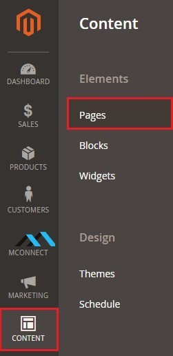 - Navigate to ‘Content’ side menu where ‘Pages’ section/button is located.