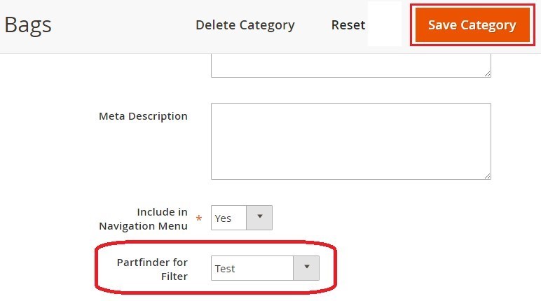5. Now, you can select the part finder for filter and click on ‘Save Category’ button to save your option to display at front-end.
