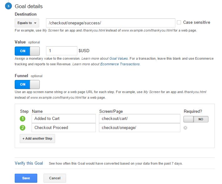 Resolving the problems that you are facing with shopping cart abandonment is not a rocket science. The solution is very simple, easy and smooth. It also don’t ask you for any money or manpower, you yourself can do it within a span of a few minutes. Google Analytics funnel is the remedy for you. Before that, make sure you have Google Analytics code added in eCommerce store. Here is guide if you haven’t installed yet: Setup Google Analytics in Magento