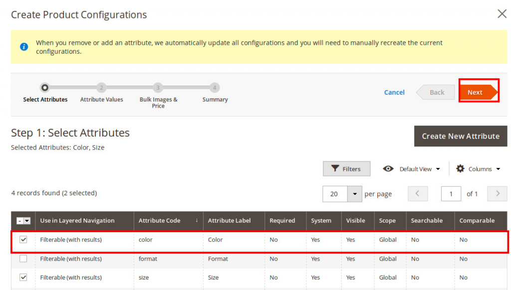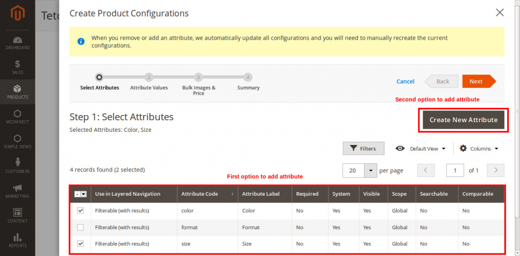 - The product attribute will be added in the product grid on ‘Create Product Configurations’