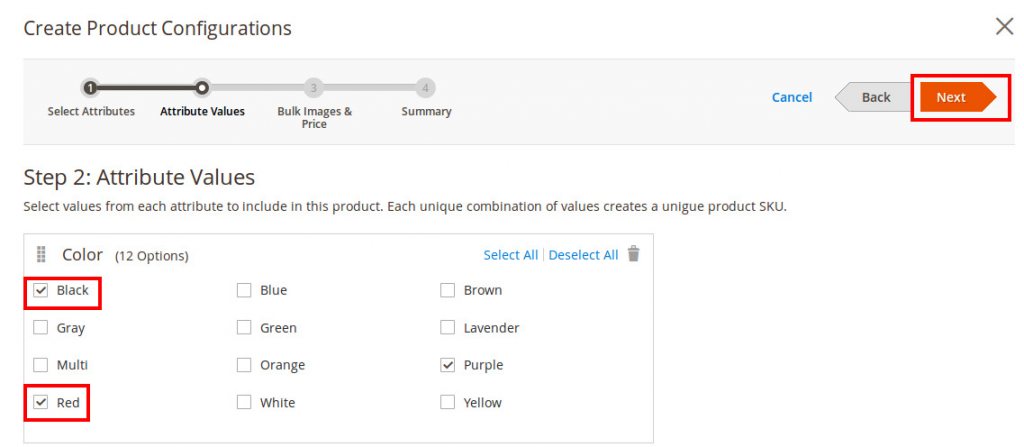 For Ex: For ‘Color’ attribute, values ‘Red/Blue/Green’ will be displayed over here.