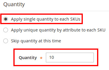 - Apply single quantity to each SKUs: This will allow you to add same quantity in all products.