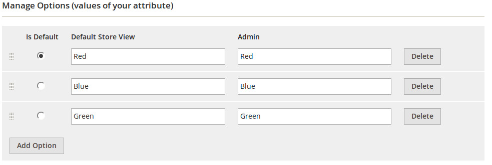 - Is Default: To make any attribute option as default option, select this radio button of the particular option.