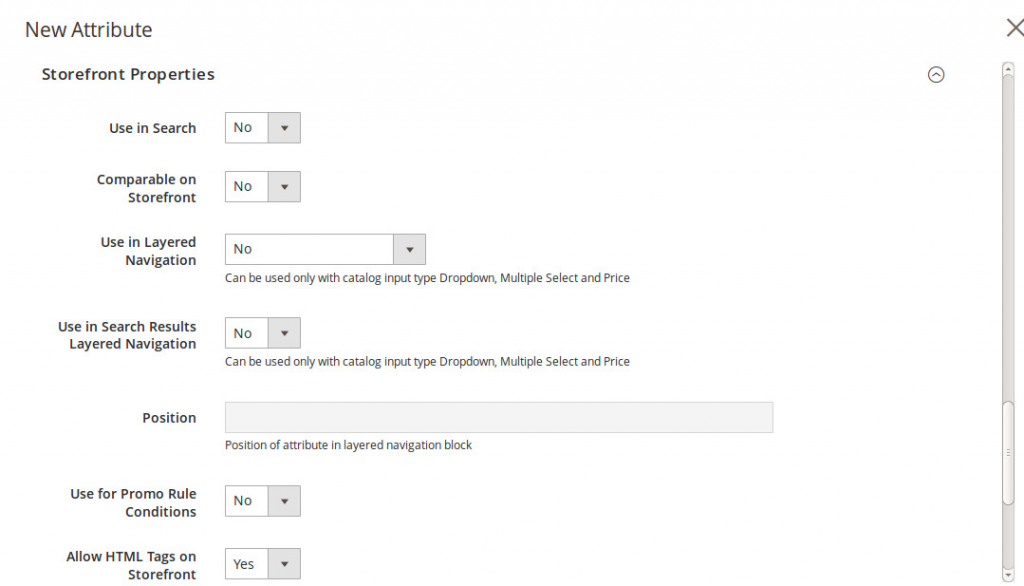 - Position: Determines at what position the attribute will be displayed irrespective of other available attributes in the layered navigation list.