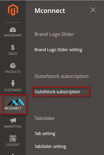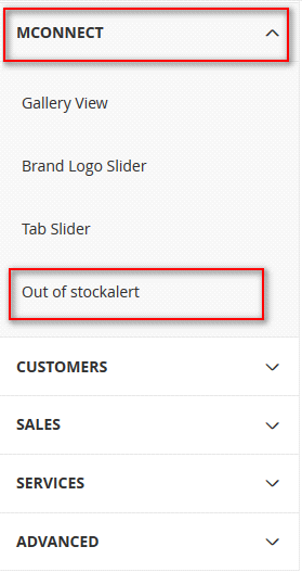 - Find Mconnect in Configuration menu and select Out of Stockalert.