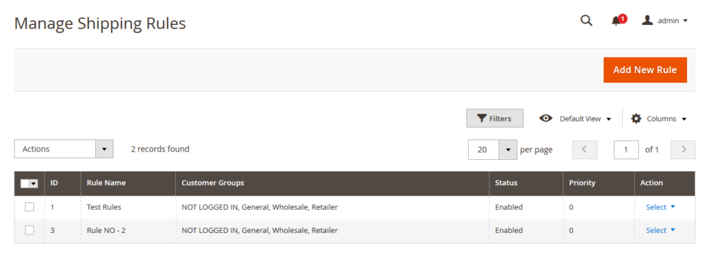 • Click on “Add New Rule” button located at top right corner to add a new shipping rule. Then follow below steps on how to configure the rule.