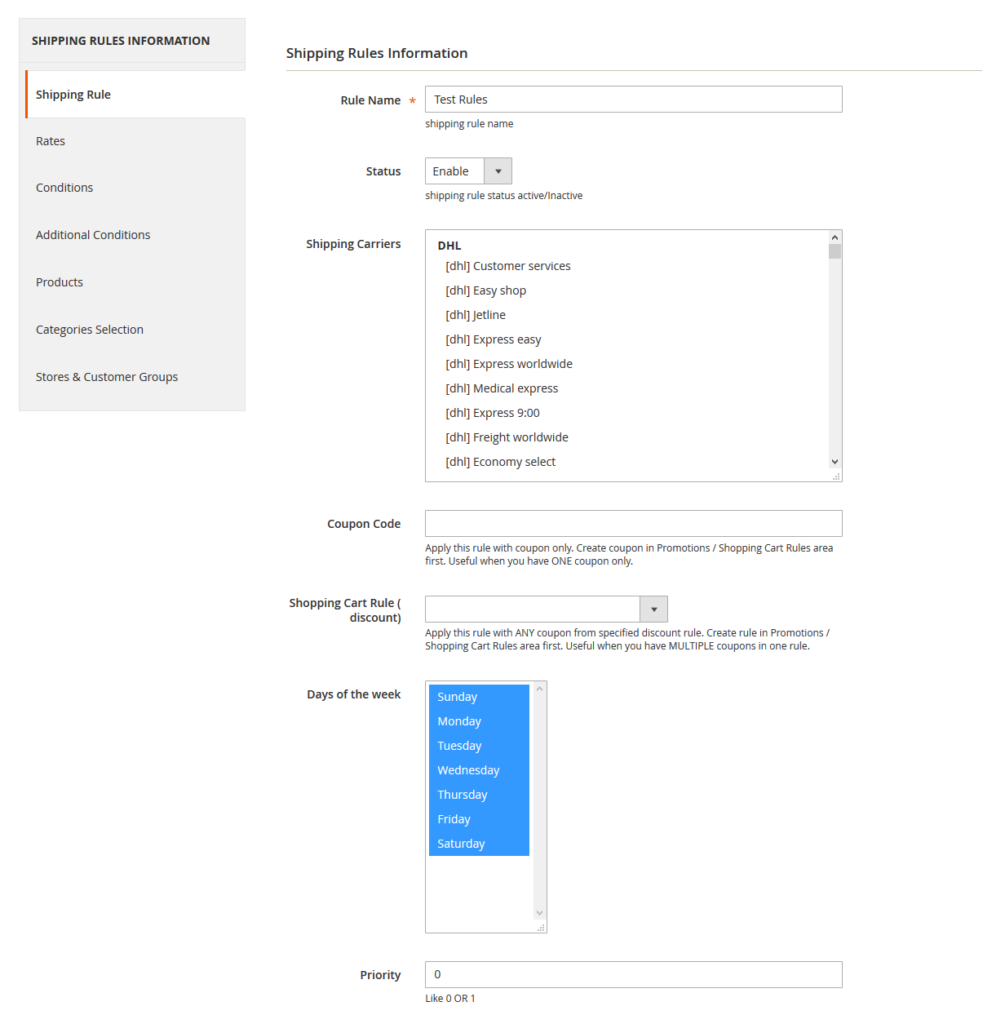 • Shipping rules can be prioritized as per need. 0 is considered as highest.