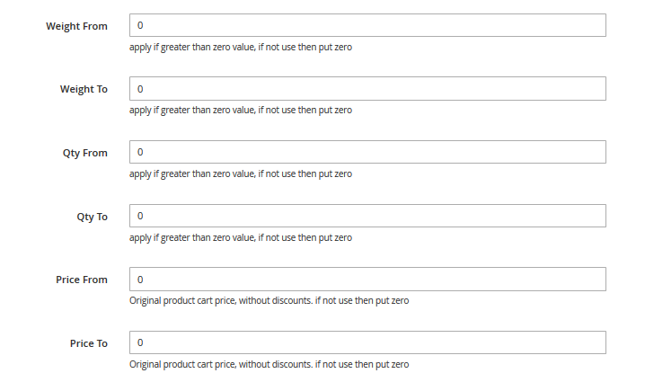 • Enter the weight range of product in “Weight From” and “Weight To” fields if the rule is to be applied for specific weight.