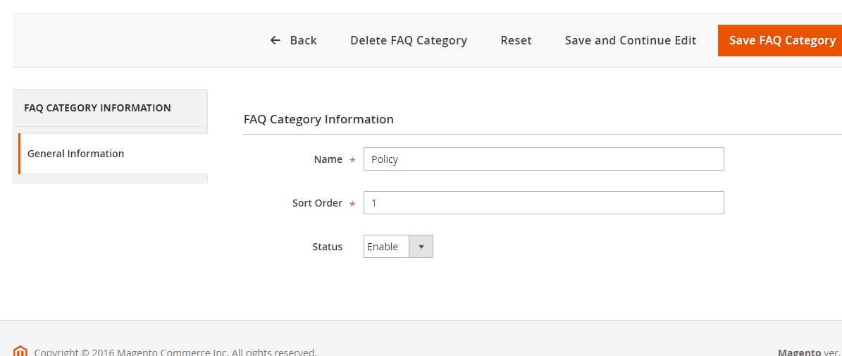Select 'Yes' or 'No' to show the FAQ option and page on the storefront.