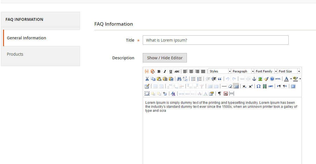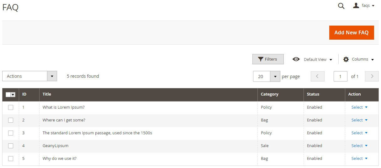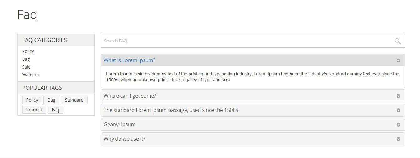 For example, if you have an online eCommerce store where you are selling different types of products or services, and you got so many reparative inquiries from your customers then this extension will help you to list the answers of many frequently asked questions such as products, services, returns, shipping, delivery, warranty, refunds, payments, order processing, license, support, store features and so on.