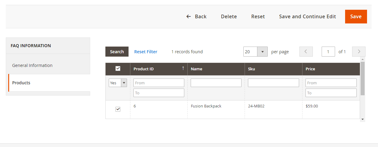 Choose 'Yes' or 'No' to show the FAQ for your store products.