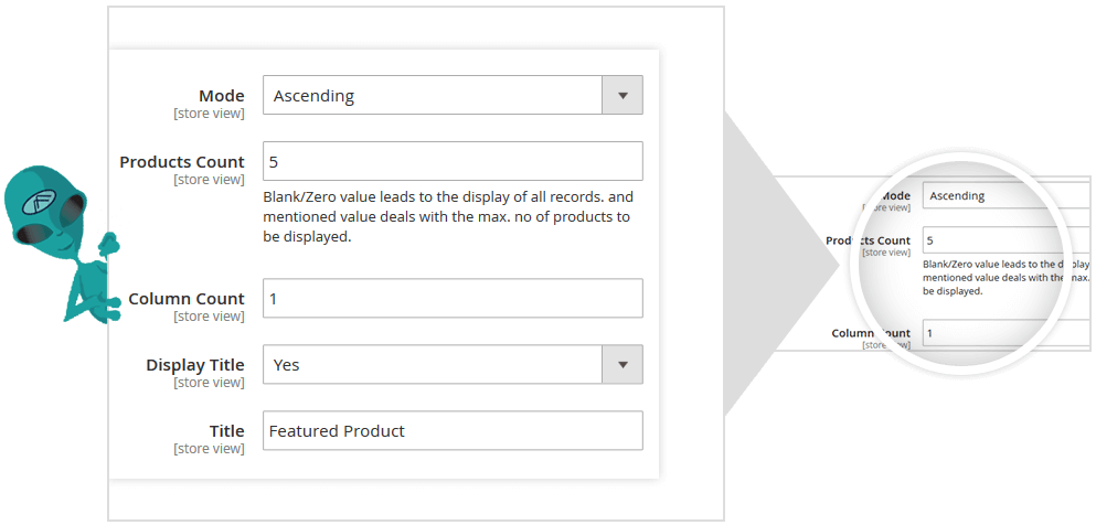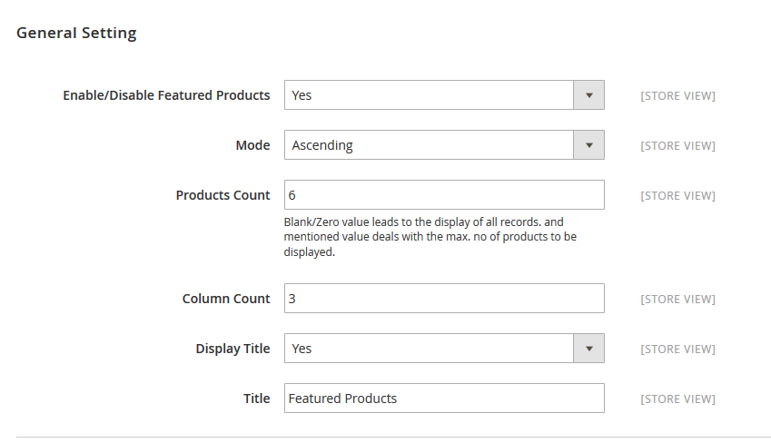 For Products count - Blank/Zero value leads to the display of all records. and mentioned value deals with the max. no of products to be displayed.