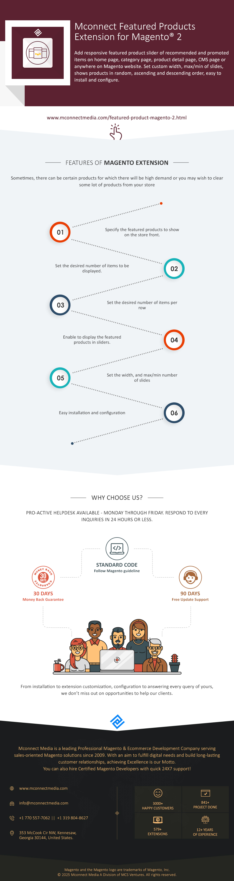 Mconnect Featured Product Slider Extension for Magento 2 is one of powerful Magento 2 module. Featured products are the normal products for which you wish to increase the sale due to their specialty or occasion. With this Featured Product extension, you can select the featured products from all of your store products and display them on your store homepage in a separate block or on a different page. The admin of the store has control over how many items or products should be displayed. The extension provides an option to feature products in a slider manner. Configure the featured product for custom width, min/max number of slides, and ascending-descending order. With this module, you can facilitate your customers with a personalized shopping experience.