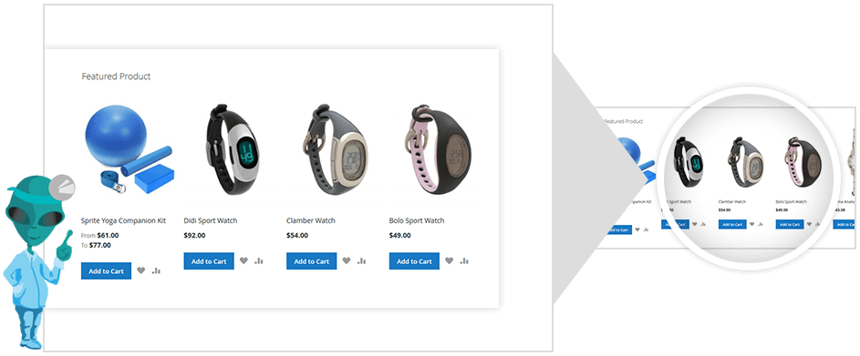 | List Page Point | Showcase your recommended product’s responsive slider on storefront in a separate block. |