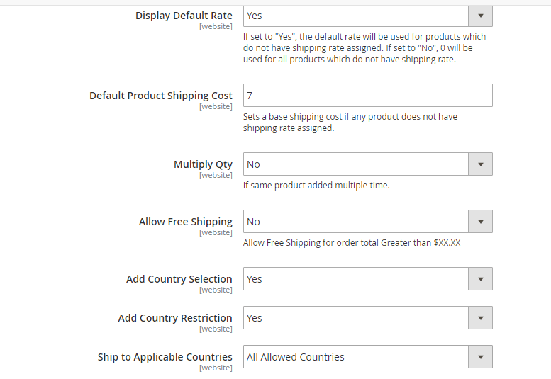 You can enable or disable to display the default shipping rate for the product when this shipping method is selected by the customer.