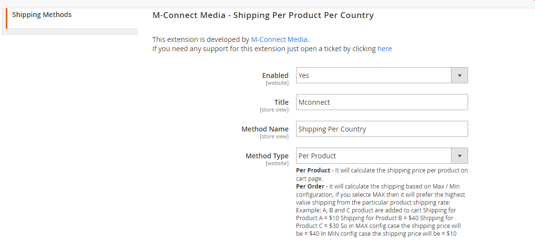 You can select the type of method i.e. per Product or per Order to apply on this shipping method.