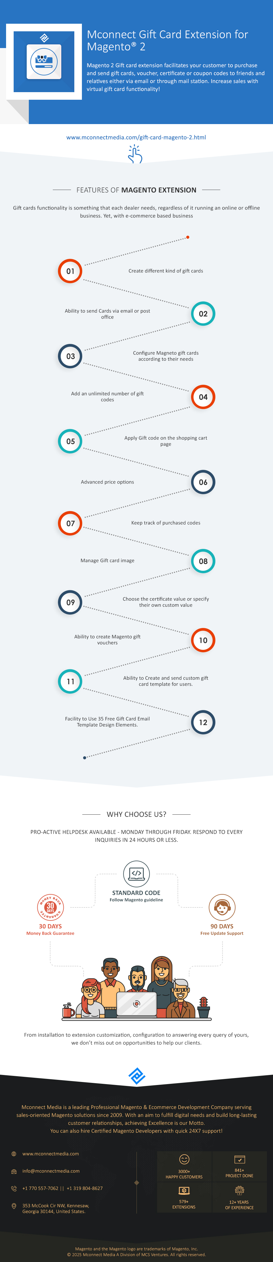 With the Mconnect Gift Card Extension for Magento 2 customers will have ability to take care of the gifting problem for the last time by buying exceptionally composed gift certificates and sending them to friends and relatives either via email or through mail station. Once the gift certificate is bought, a unique gift code with a greeting message will be sent to the beneficiary. The module works both for approved customer and guest visitors.