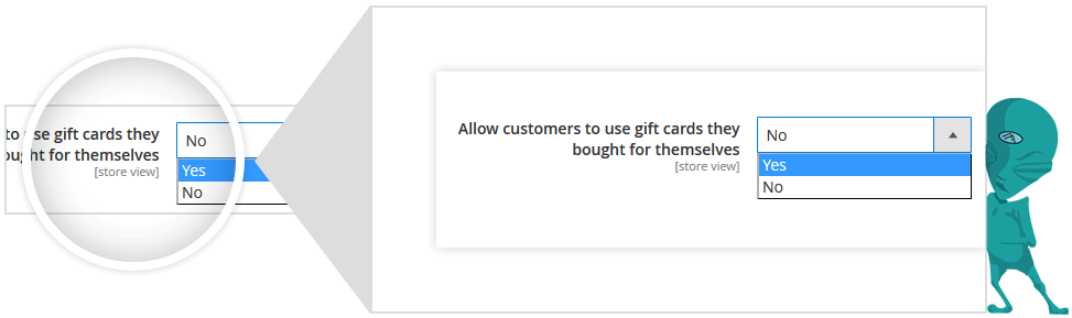 This feature will allow a customer to use the gift card to be used by the purchaser himself. If selected "No", a purchaser cannot use the gift card he/she purchased.