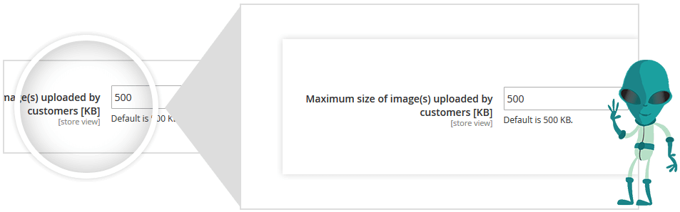 Admin can set a maximum size for images to upload by customers to the gift card templates. This field accepts value in KB(kilobytes)