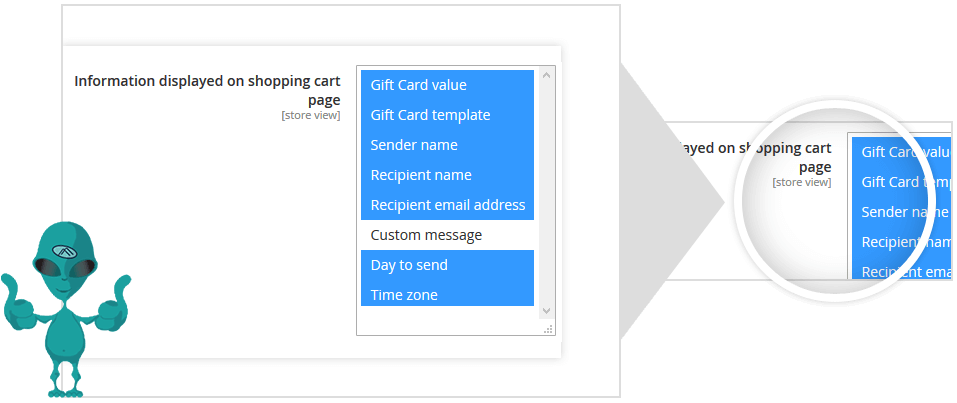 Admin can set a maximum length of the custom message a customer can add to the gift card.