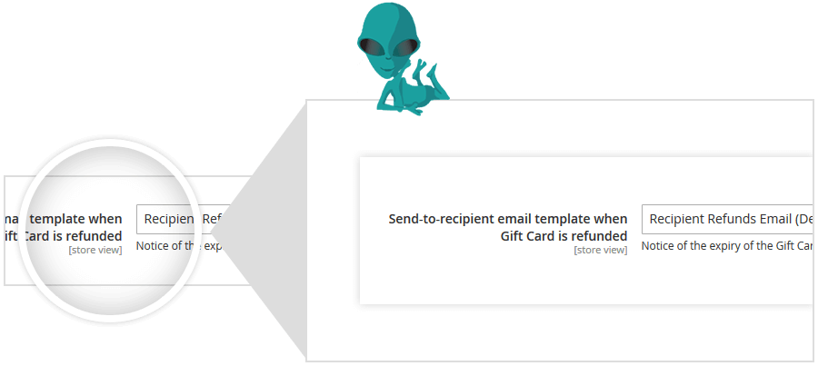 You can select email template to gift card refund email which is sent after a gift card is refunded.