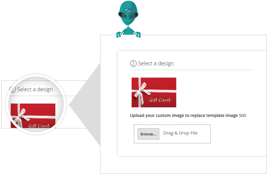 This option allows user to choose design template for particular occasion like birthday, marriage anniversary, etc. Also user can upload custom image if it’s allowed from configuration.