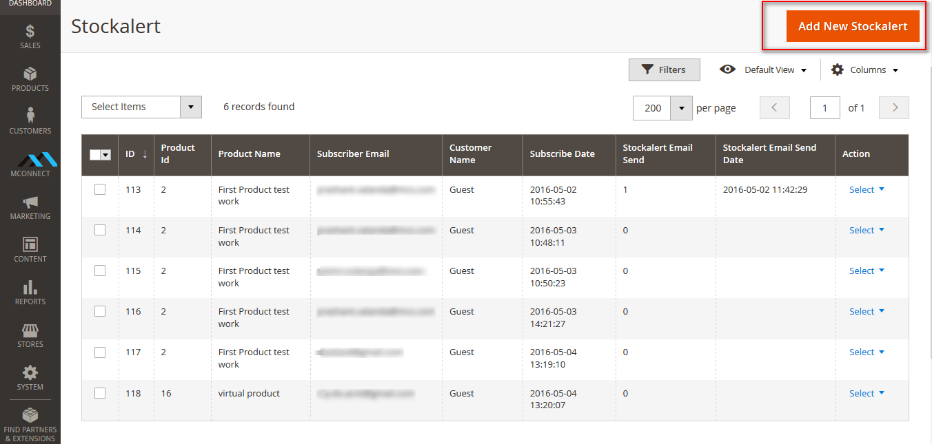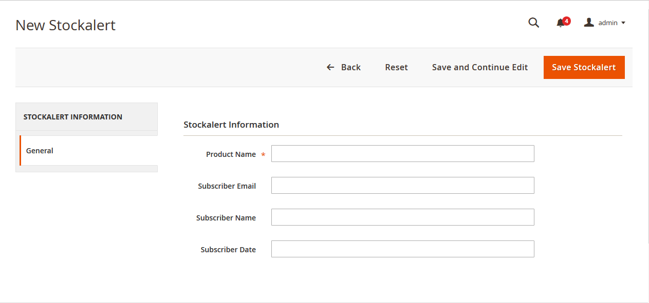 Enter the Outofstock subscription information like Product Name,subscriber name,subscriber email and date of subscription.