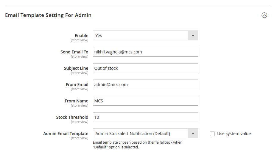 - Configure the extension to send email to admins of the store as well when a product gets out of stock.
