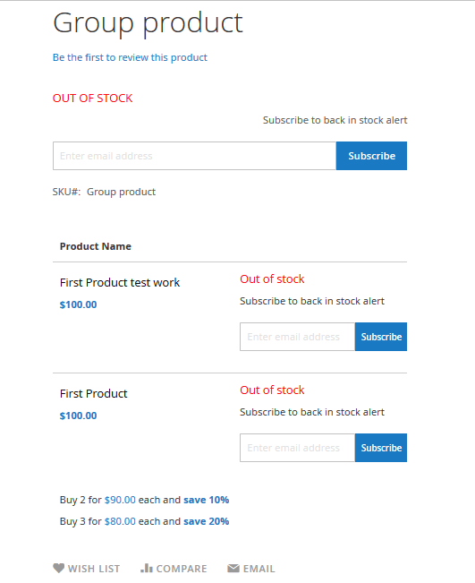 - Facilitates the user to get notifications for availability of individual products even if they belong to grouped products.