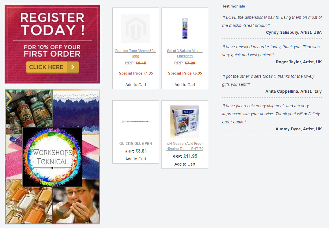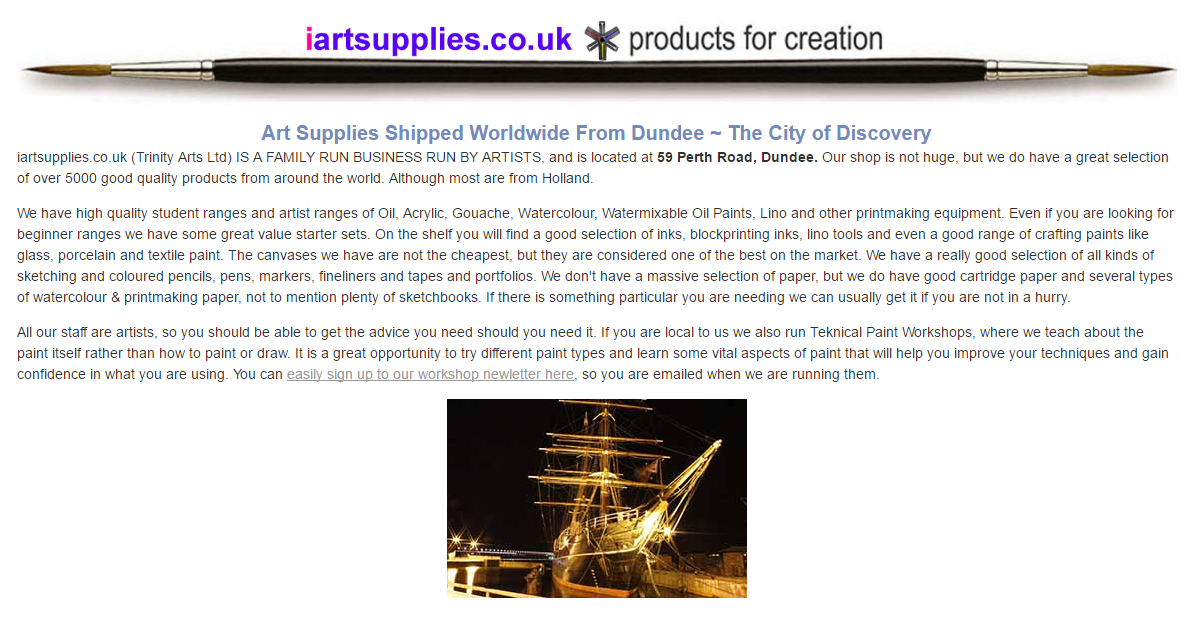 It is an ecommerce website supplying artist materials for artists and run by artists too. It includes a broad range of materials including paints, brushes, canvases, easels, inks, paper, pens, pencils, and a lot more.