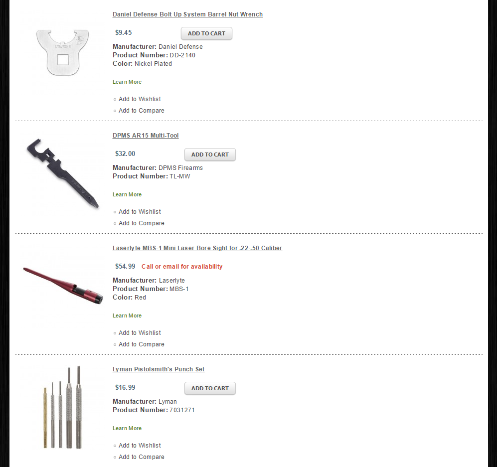 As its name suggests, it is a Magento 1 online store selling Rifle Parts and Accessories including barrels, gun smith tools, lowers, magazines, and uppers.