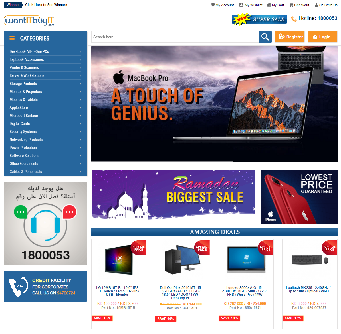 It is an online portal to fulfill your IT requirements with genuine products available online at best price tags in Kuwait and adjoining areas. It sells thousands of products with this storefront.
