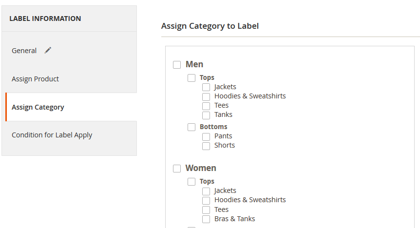 Set to display each label for products of multiple categories and multiple products simultaneously.