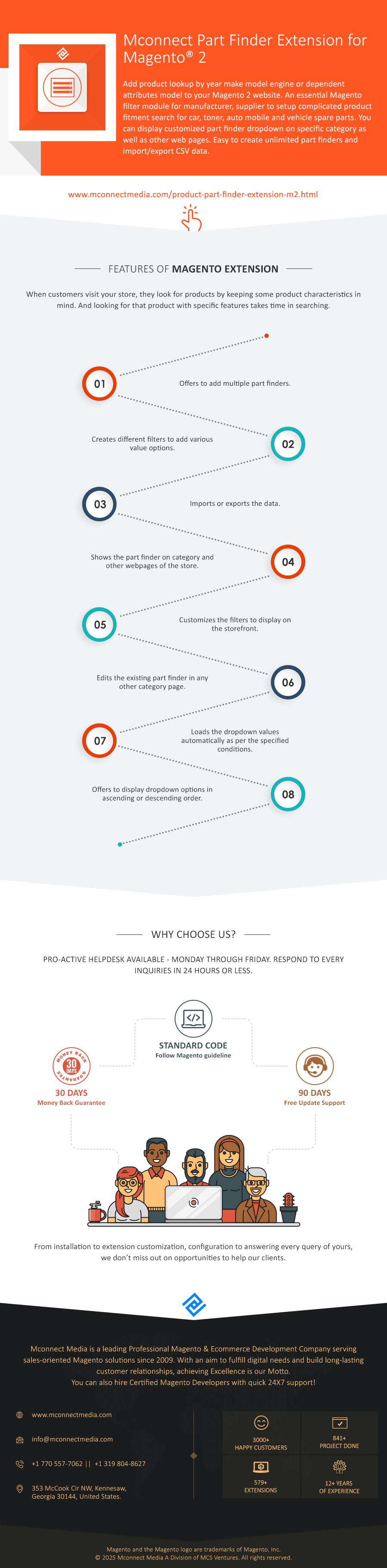 Mconnect Part Finder Extension for Magento 2 allows customers to search for products with few fields from any webpage of the store and then narrow down the search results if required. With this extension, you can display easy to use the part finder search box on the category as well as other CMS pages that allow customers to use predefined filters. Once the customer selects product attributes for the given fields, the extension will filter products and will appear on the same page without redirecting to other using AJAX. Also, the filters related to that category or search are displayed without affecting other category filters so your customers can even use that in need. The admin can also upload CSV file & specify a list of products in terms of creating custom part finder filters.