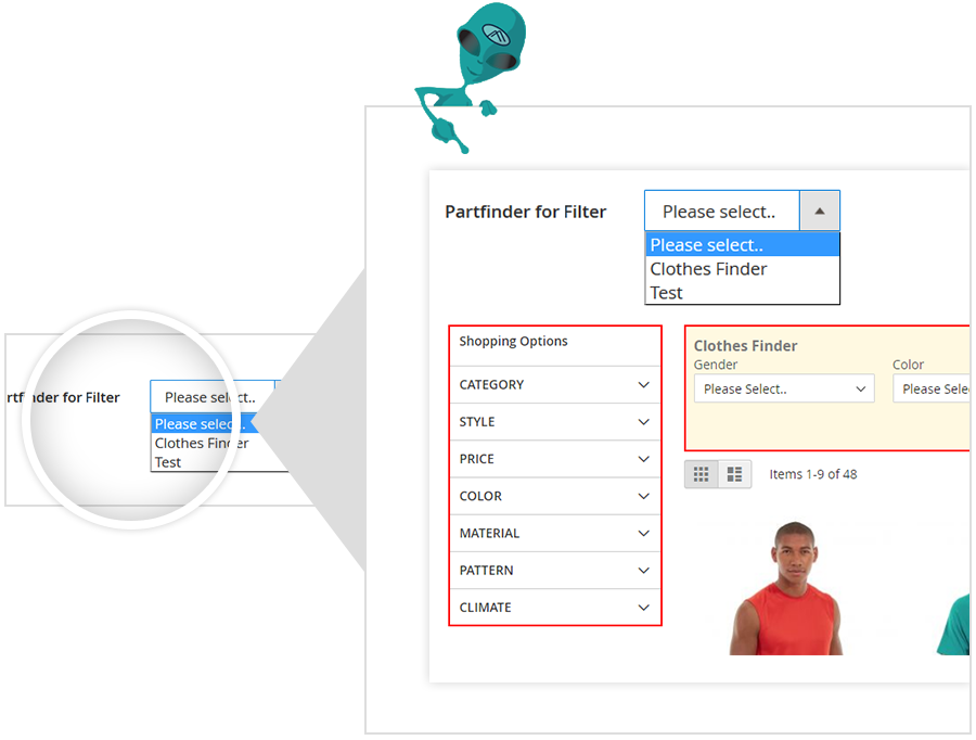 The Part Finder extension for Magento 2 enables you to display a part finder on any particular category page. Once the customer will select all the options from the part finder, the filters for that particular category will get displayed without affecting any other category.