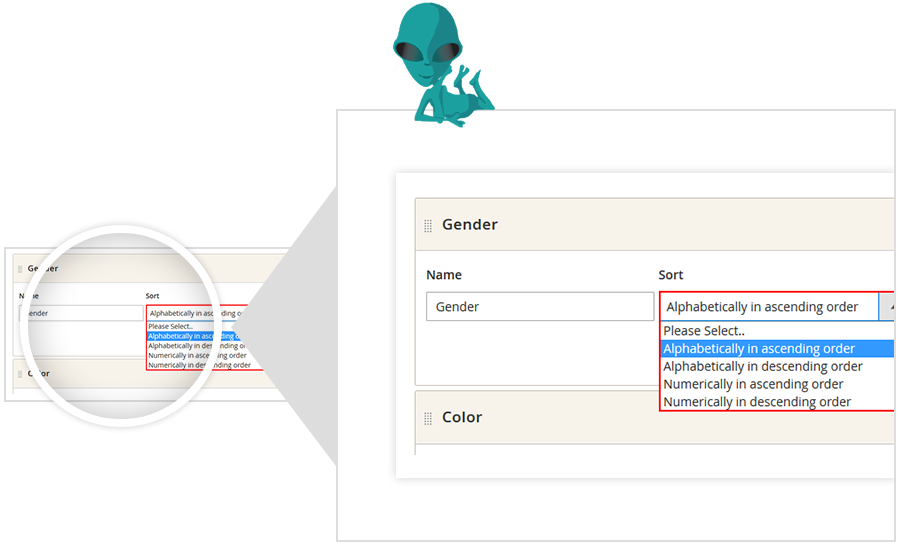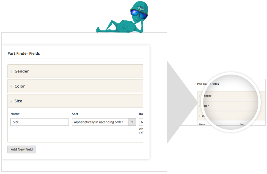 For example, on the clothing category page you want offer part finder fields in order: Size, Gender and Color; you just need to hold the field, drag and then drop at the position you want it to appear on the store front.