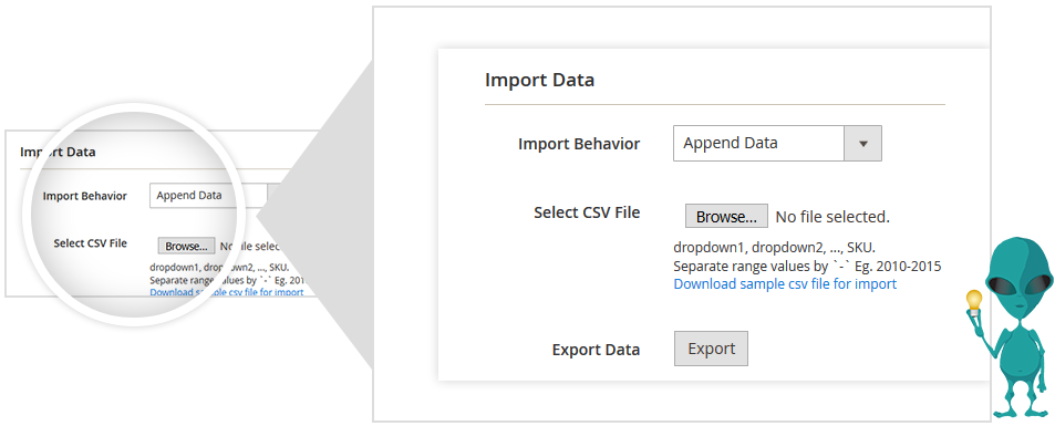 The configuration or setting of some extensions take more time. So, to increase the process of configuration, the extension offers the store owners to import the CSV file.