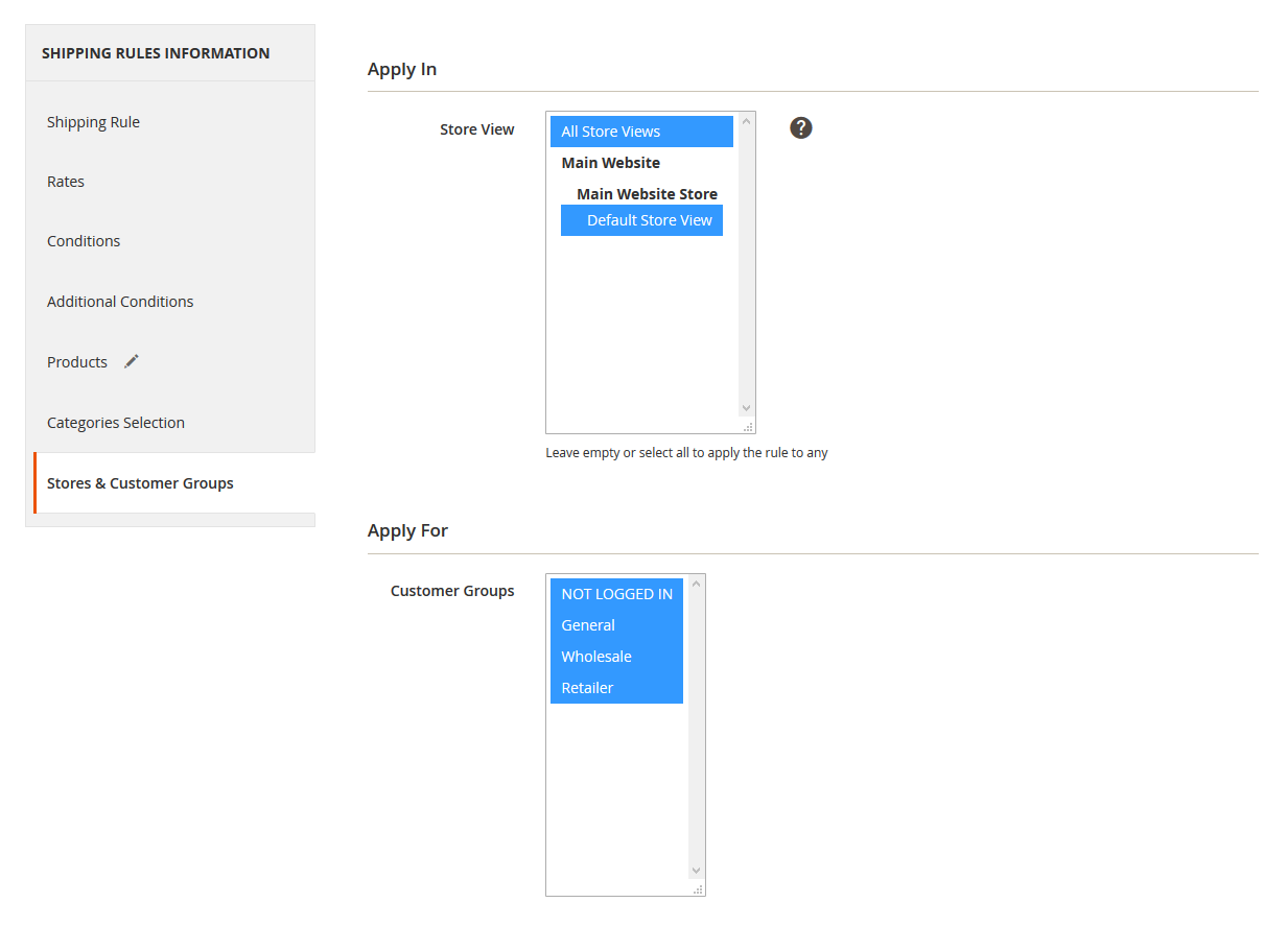 The shipping rule extension is compatible with multiple stores and customer groups. You can select them based on your requirement.