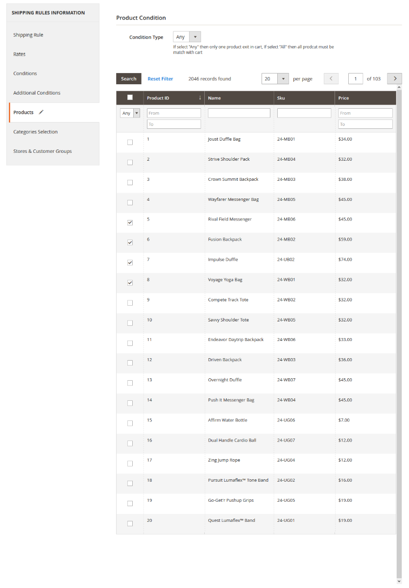 This functionality allows selection of products to which the shipping rule is to be applied.