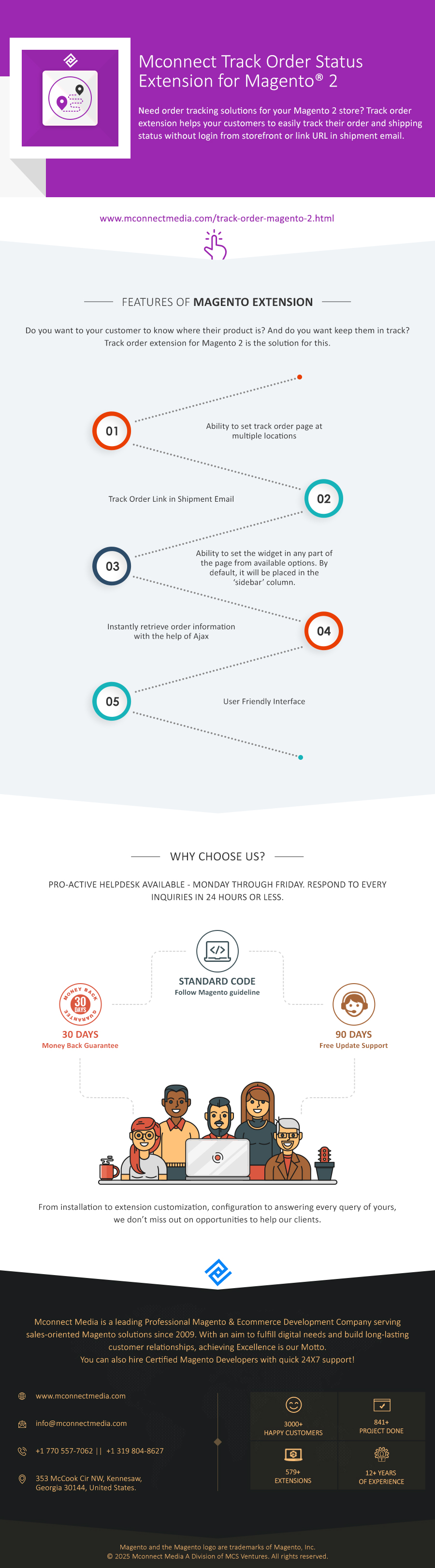Mconnect Tracking Order & Shipment Status Extension for Magento 2 allows your customer to quickly track their order shipment status without logging in to their account. All they have to do is enter the order number and registered email address using which they have placed an order; then the system will display all the details of the order & latest whereabouts of their order. Your customers can now even see the invoice and shipment details for the same and print those details directly if needed. Because 22% of shoppers are abandoning their carts if there is no shipping and order tracking functionality. So, instead of keeping your customers into a dark, the extension creates a win-win situation by continuing loyalty and retention of the customers.